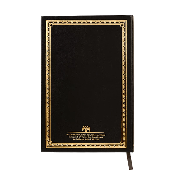 Any proud Hogwarts student would be pleased to have this vintage look faux-leather notebook in their home study! This deep black journal features an impressive metal Hogwarts crest on the front cover, and gold foiled detailing near the border’s edge.
