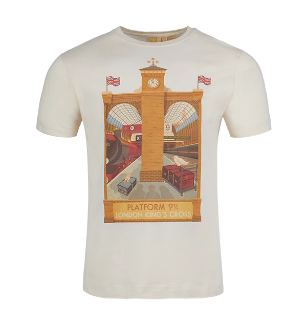 A t-shirt featuring an exclusive Platform 9 3/4 print from MinaLima; the graphic design duo from the Harry Potter and Fantastic Beasts film series. Multiple sizes available.