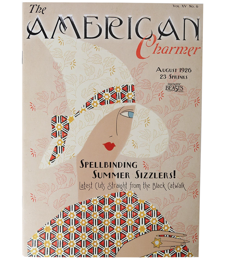 An A5 paper notebook with the front cover in the style of the ‘Witch’s Friend’ magazine from Fantastic Beasts and Where to Find Them.