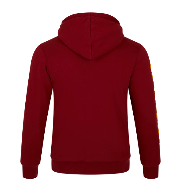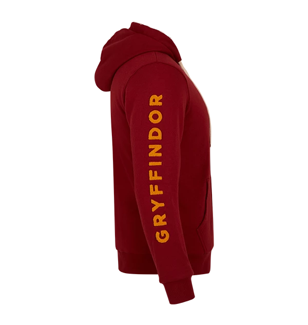 Refresh your wardrobe with this unisex Gryffindor fleece hoodie. The scarlet red hoodie features a yellow lion embroidered into the right-hand side of the chest. The hoodie is complete with the Gryffindor house motto ‘Courage’, ‘Bravery’ and ‘Determination’ printed in yellow.