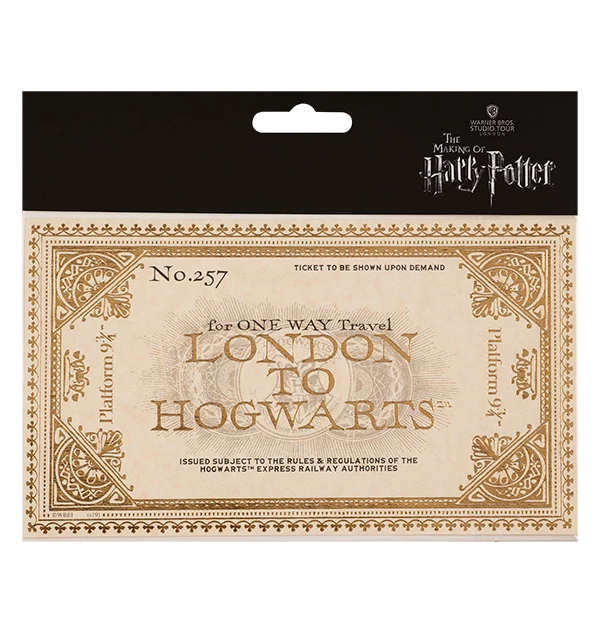 Take home your very own replica of the iconic Hogwarts Express Souvenir Ticket. The Hogwarts Express ticket is embellished with gold foil, and is based on the original artwork by MinaLima, the graphic duo, who designed all the original graphic elements for the Harry Potter films.