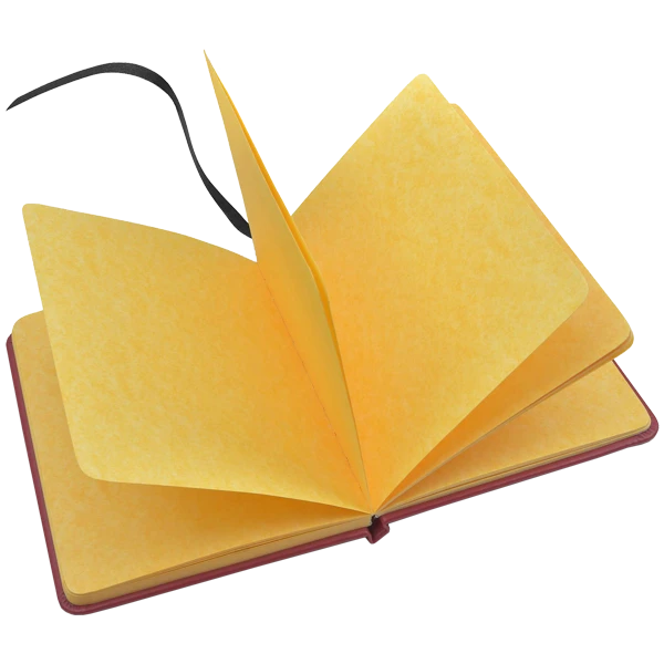 The journal has approximately 72 parchment-like textured sheets, dimensions 13cm W x 18 cm H x 1.5cm D.