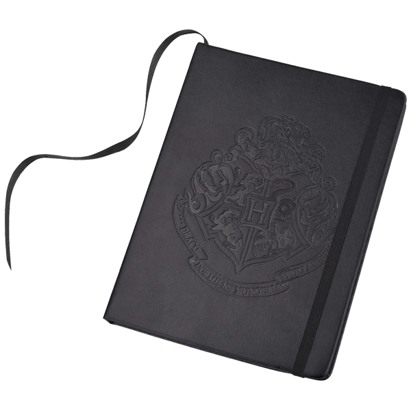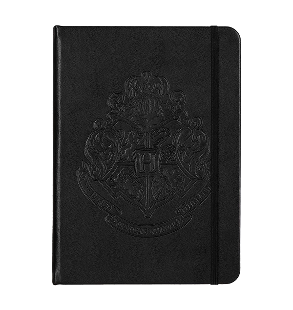 This Hogwarts notebook features parchment-like textured pages and an embossed Hogwarts crest on the faux-leather cover.Ā