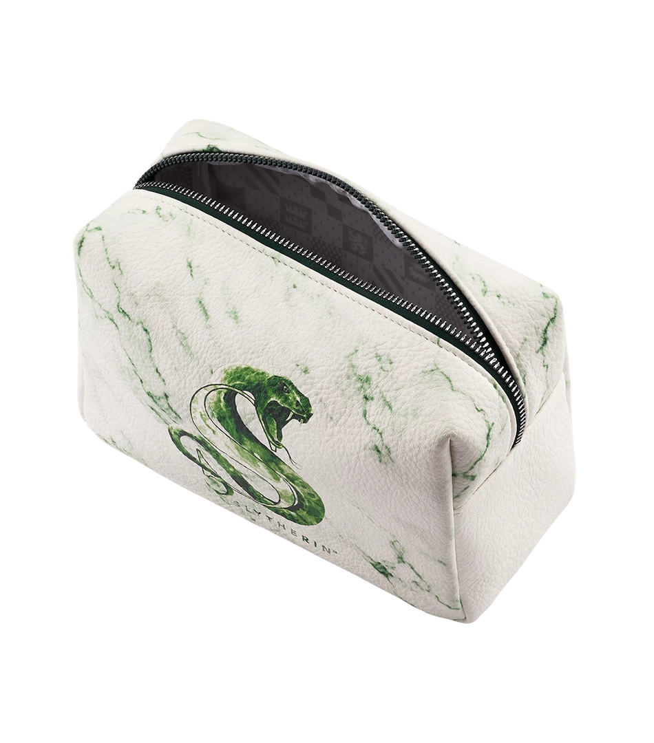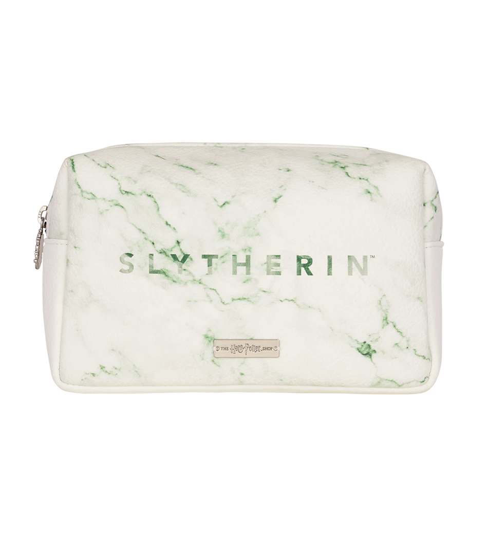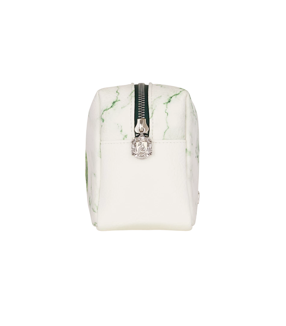 Inspired by Slytherin house pride is this unique Slytherin makeup bag. The bag features a white and emerald green marble effect in a PU leather material and is complete with a silver zip detailing the Slytherin house crest.