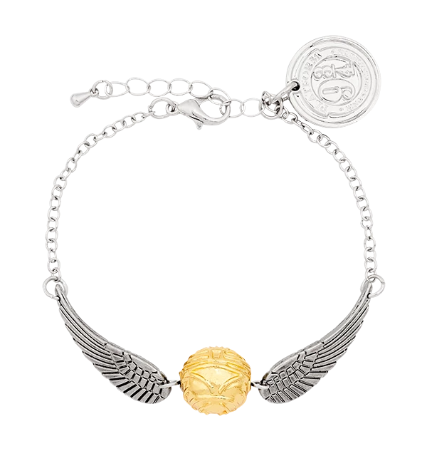 If you are seeking one of our most popular items, be sure to catch your very own Golden Snitch Bracelet! Perfect for Quidditch and Harry Potter fans alike, this beautifully crafted bracelet features a unique 3D replica of the Golden Snitch and comes accompanied by a silver Platform 9 3/4 charm.
