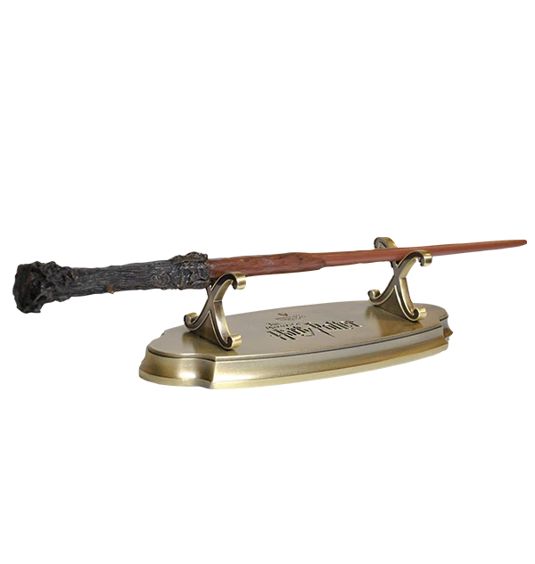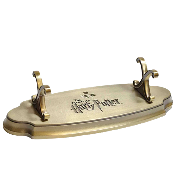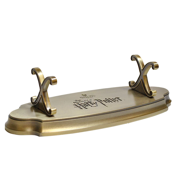 Keep your favourite wand on display and show off your school pride with this unique wand stand, the perfect way to exhibit your collectable wand. This metal Harry Potter wand stand is embossed with the logo of the Warner Bros. Studio Tour London in the centre of the stand and is a great way to present your bespoke Harry Potter wand anywhere around your home. The stand has been designed with a gold finish and measures approximately 22x8x6cm. Please note collectable wands are sold separately.